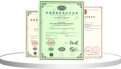 先后取得北京市建設委員會核發的機電工程專業承包、裝飾裝修專業承包、建筑智能化專業承包等多項專業承包施工資質;并順利通過ISO9001、T50430質量管理體系認證,ISO14001環境管理體系認證和OHSAS18001職業健康安全管理體系認證,完成三個體系的整合認證工作。
